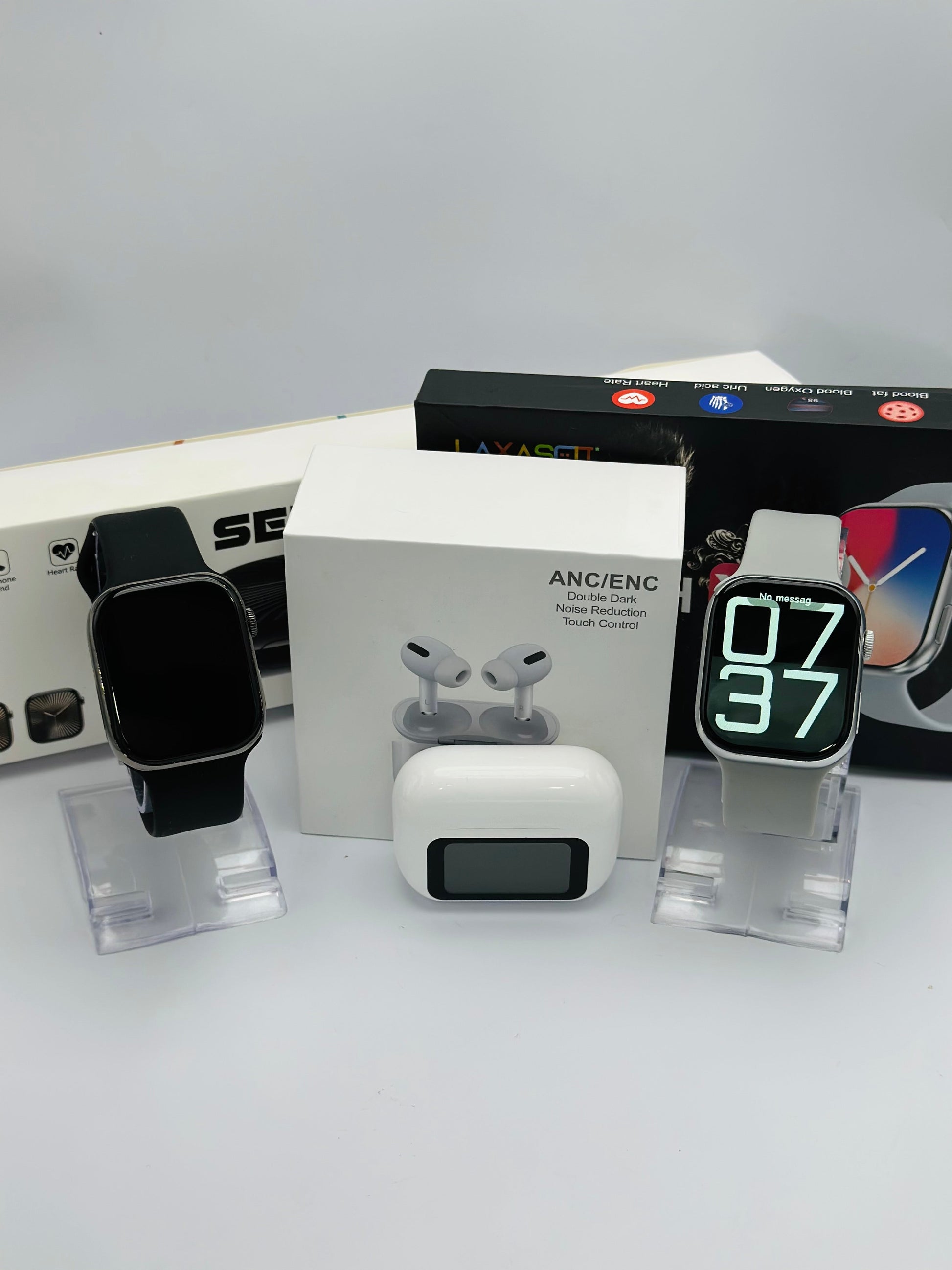 Family Bundle 4: This bundle includes 1 - Series 10 Stainless Steel (Only Silver Color Available), 1 - Watch X (Two color options available: Black/Silver), and 1 - Touch Screen AirPods