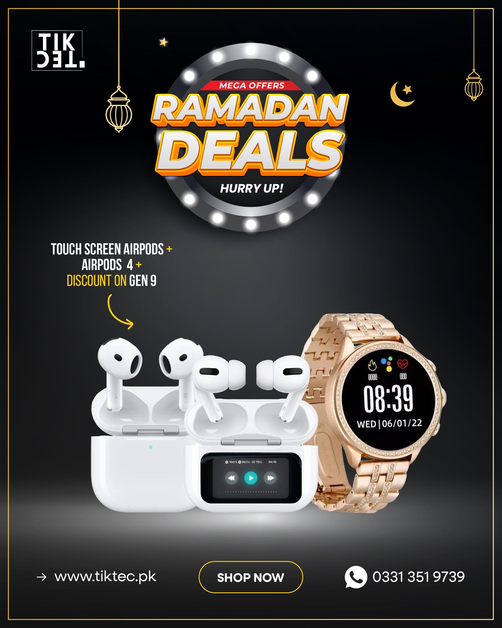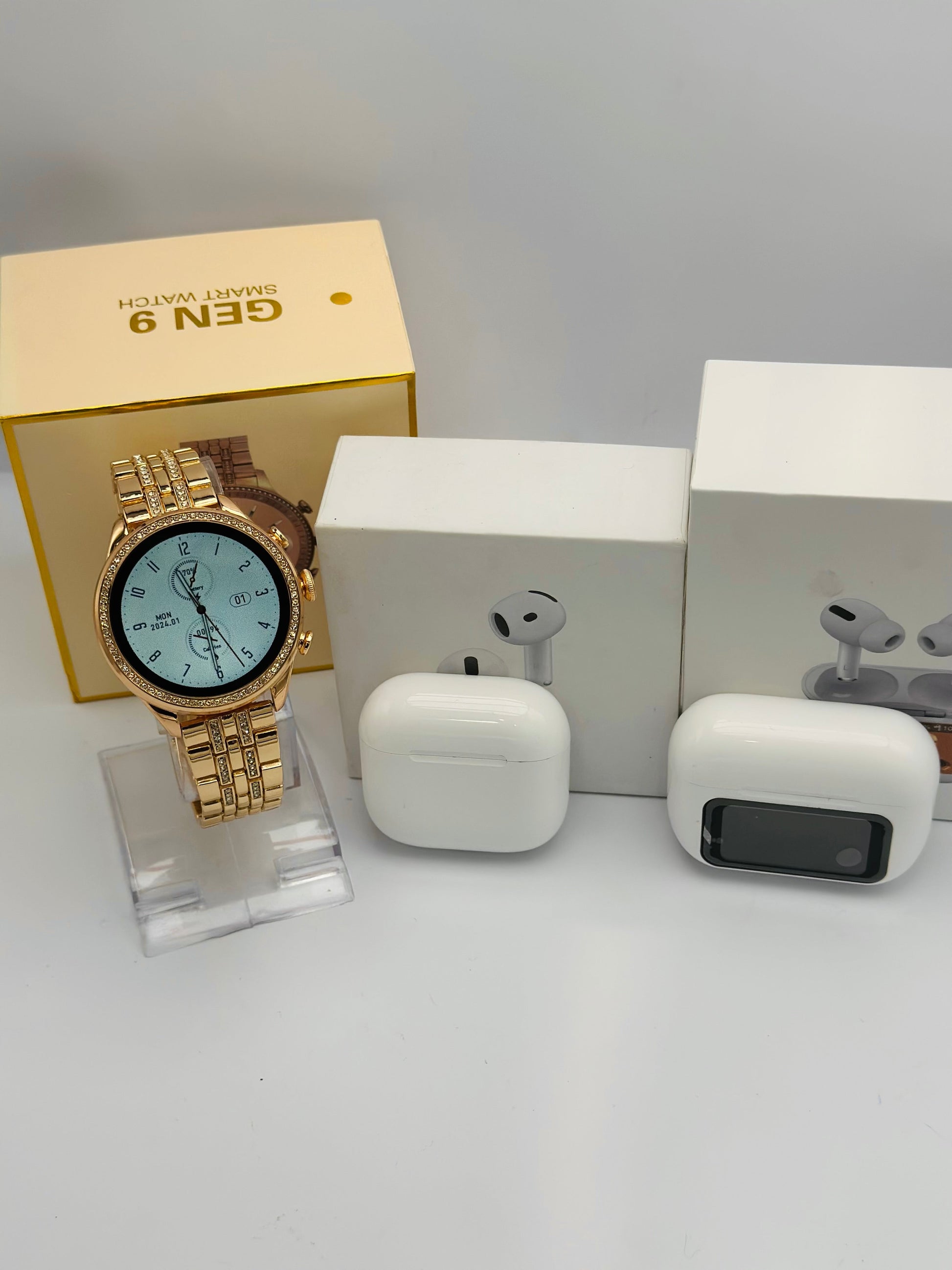Family Bundle 5: This bundle includes 1 - Touch Screen AirPods, 1 - AirPods 4, and 1 - Gen 9 (Color Only Rose Gold Available)