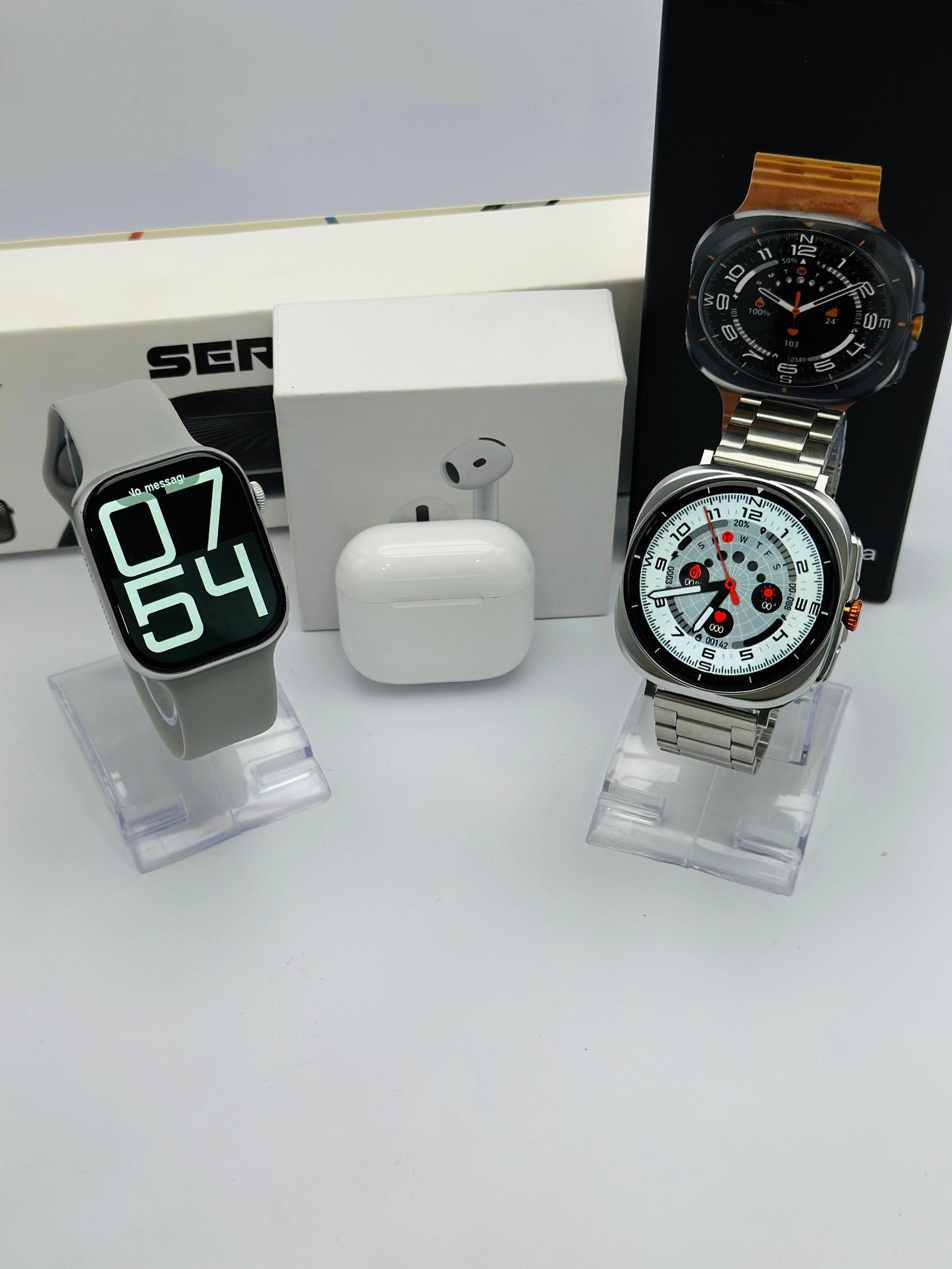 Family Bundle 8: This bundle includes 1 - JS7 Ultra (Color options: Black/Silver/Orange Available), 1 - Series 10 (Only Silver Color Available), and 1 - AirPods 4