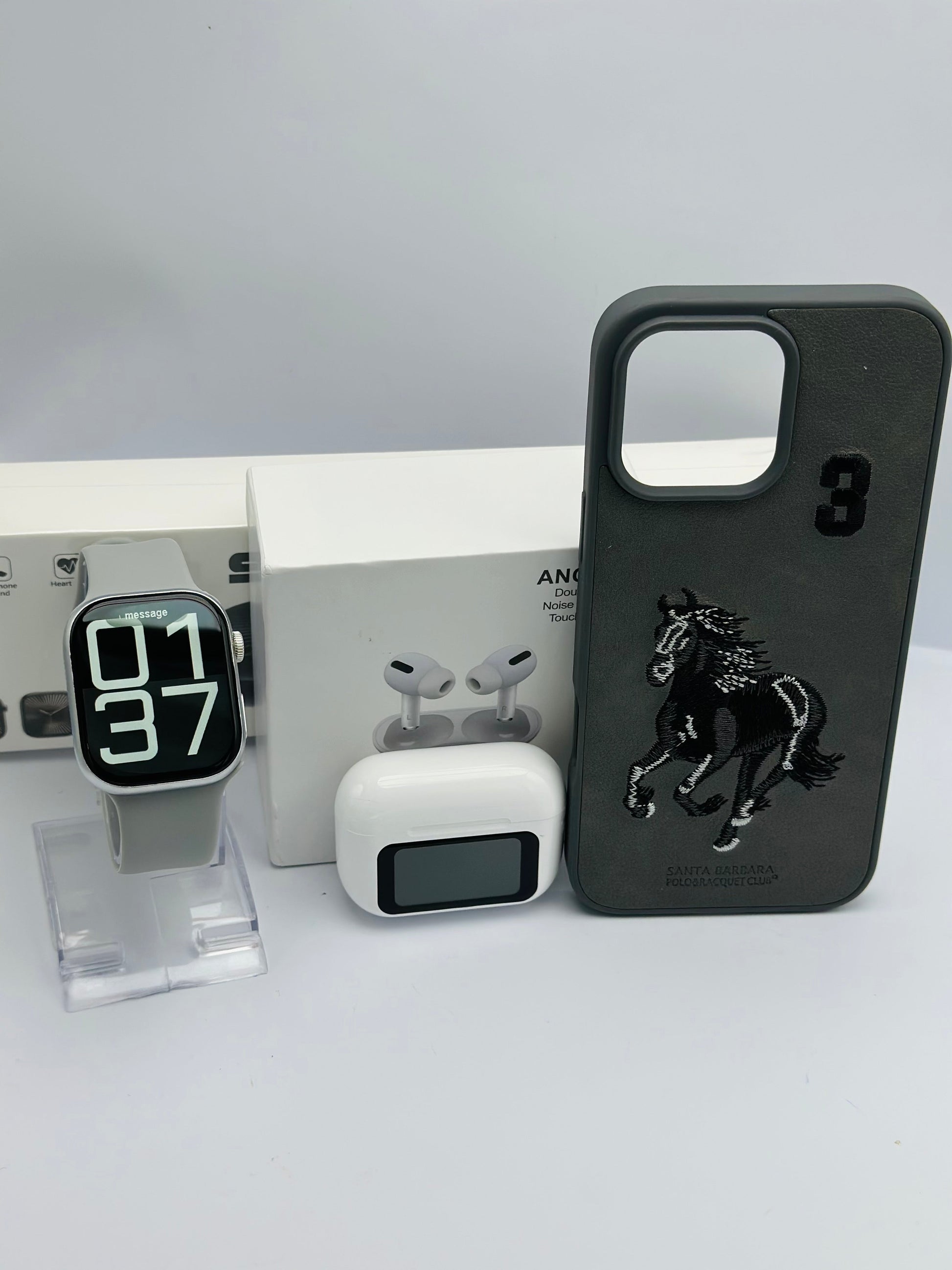 - Package Includes: 1x Smartwatch, 2 x extra straps, charging cable, user manual 1 x touch screen airpods 1 x Polo Santa Barbara case